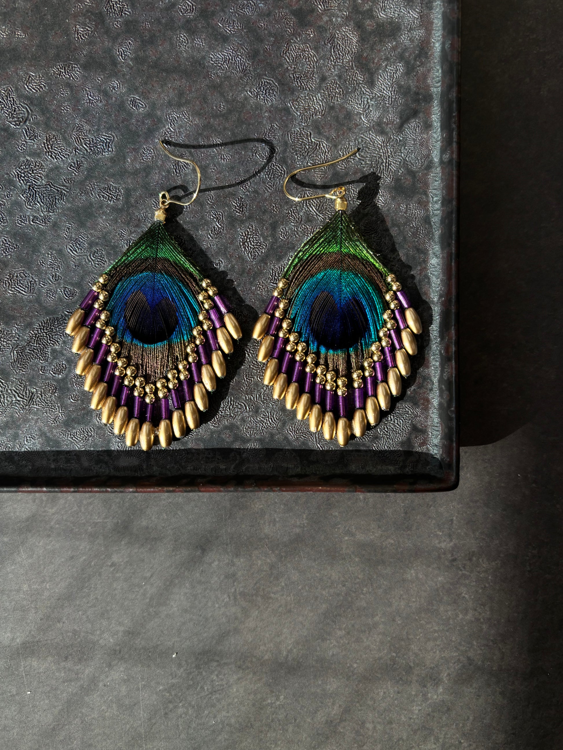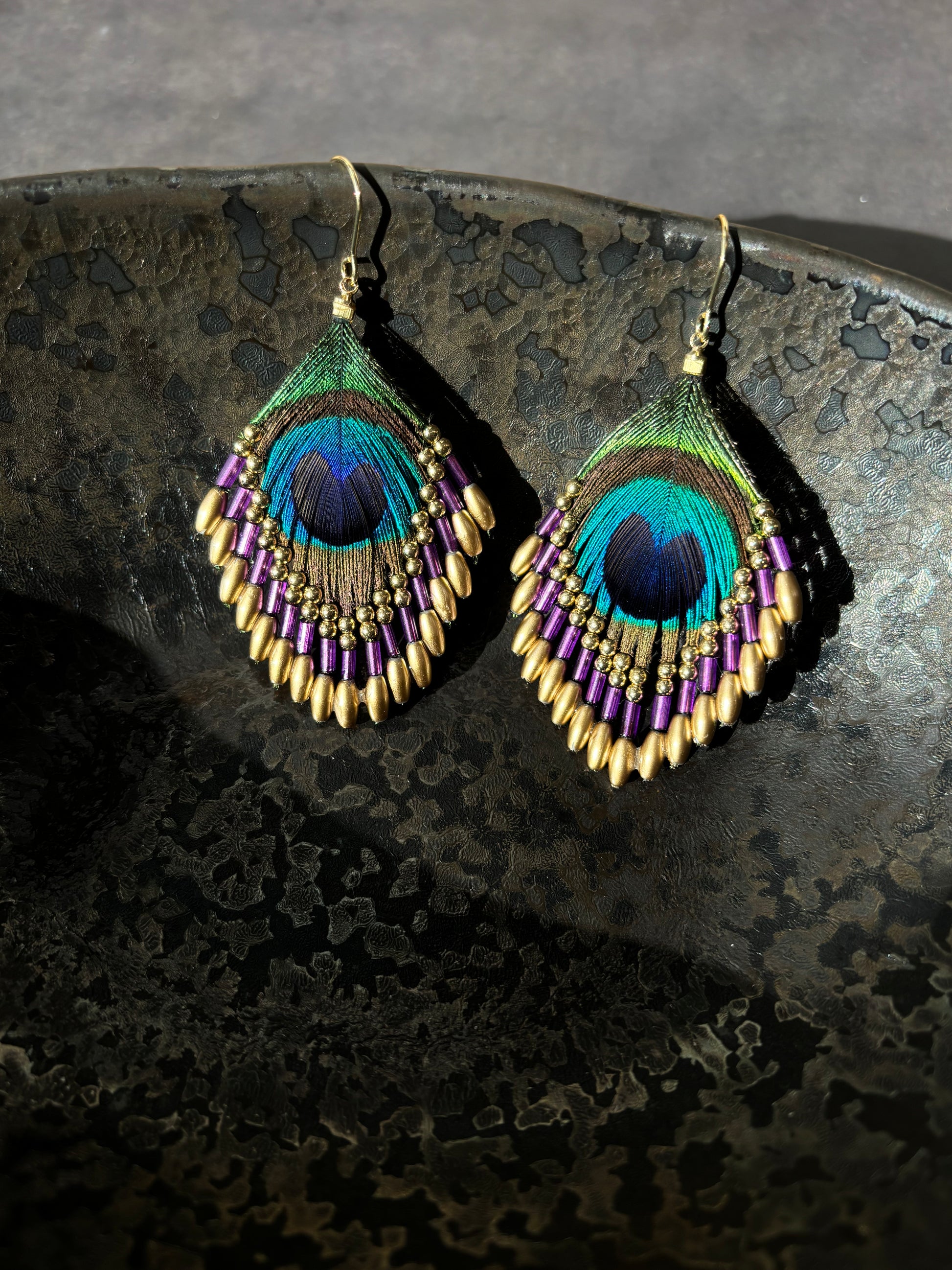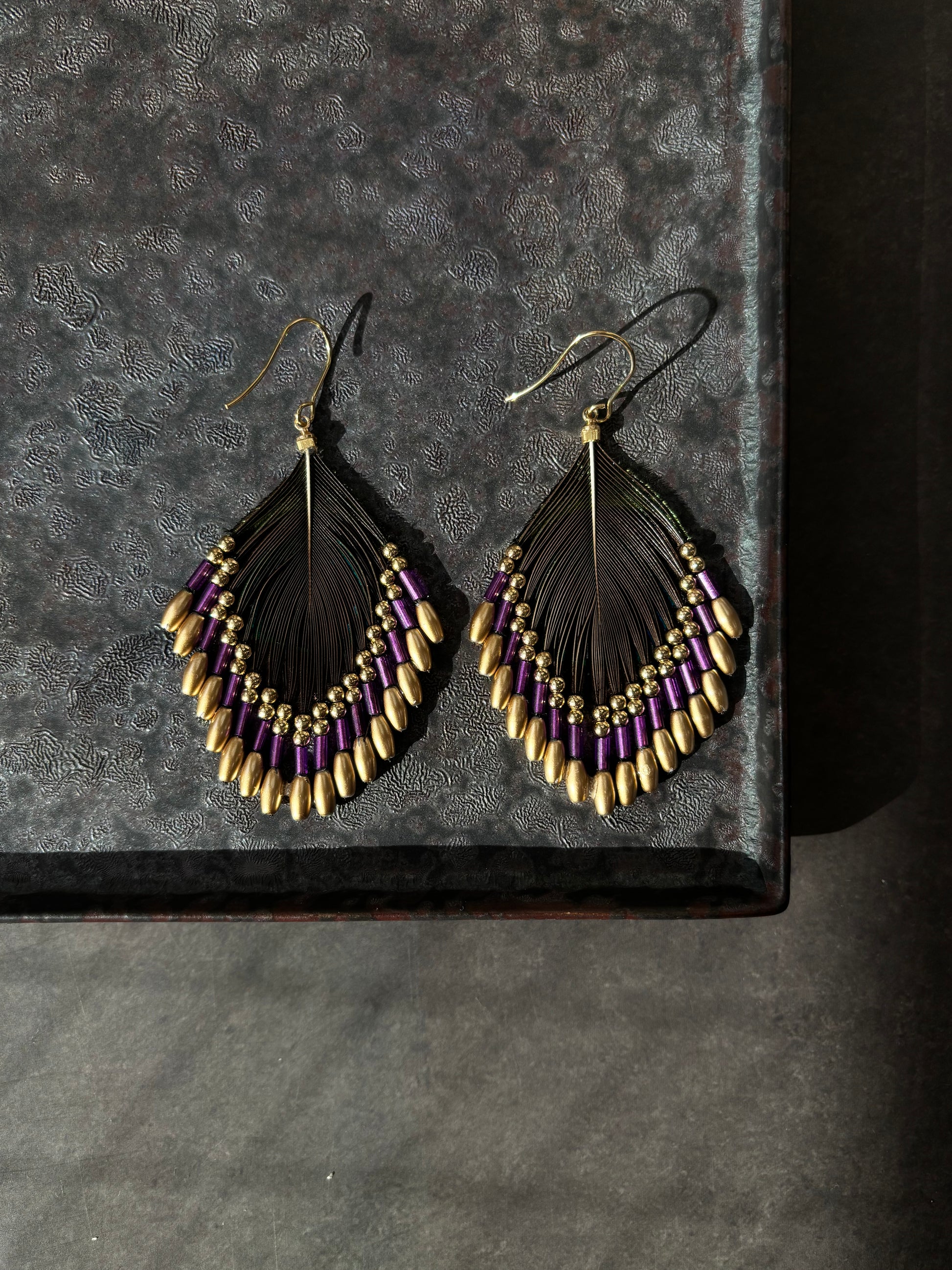 孔雀の羽ピアス パープル