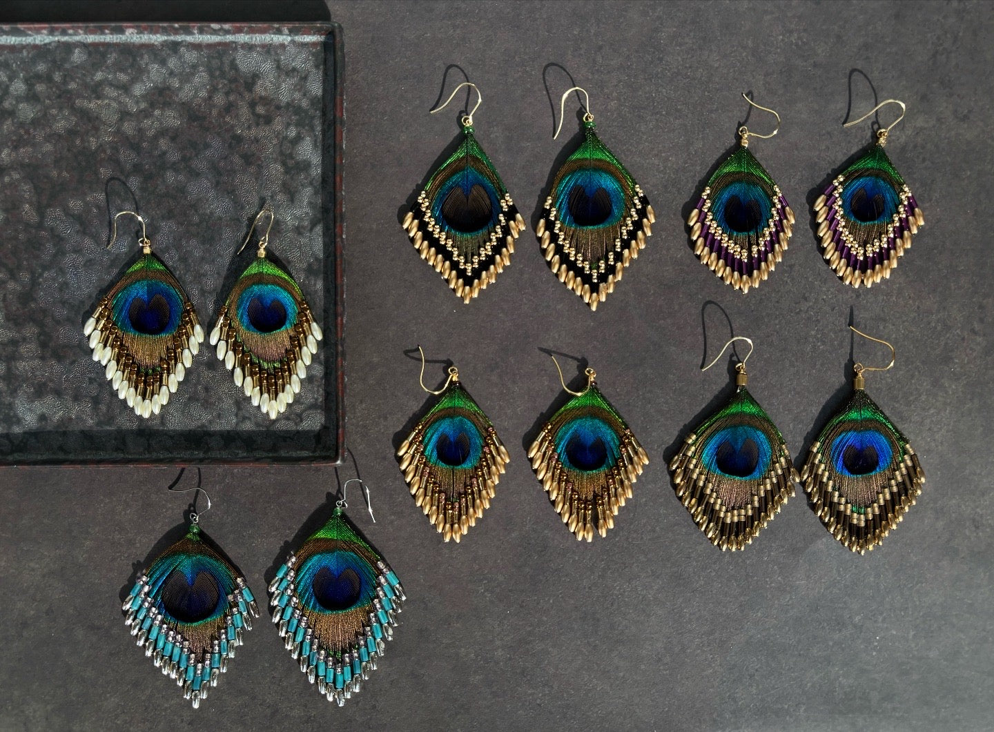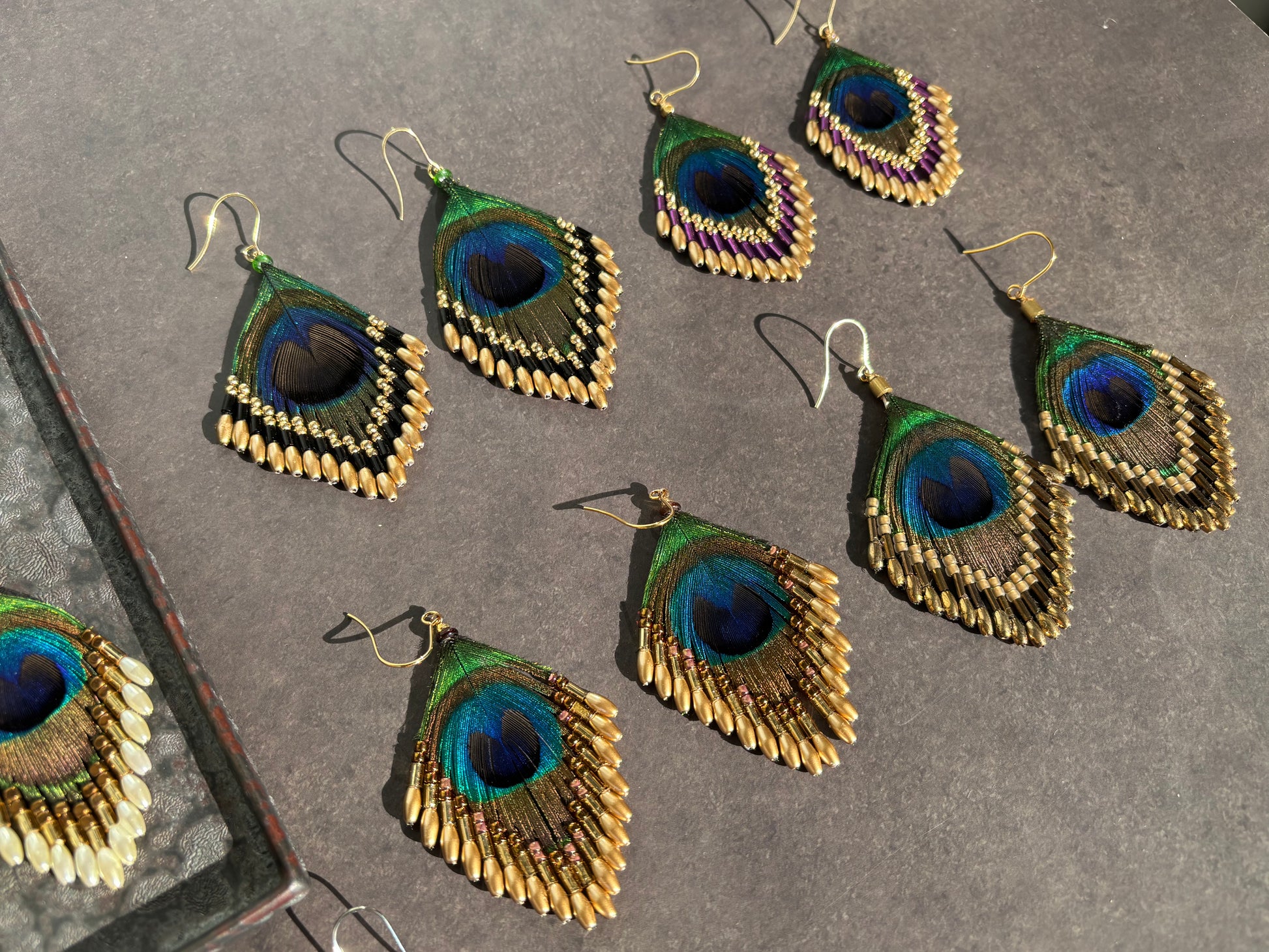 本物の孔雀の羽のピアスです。