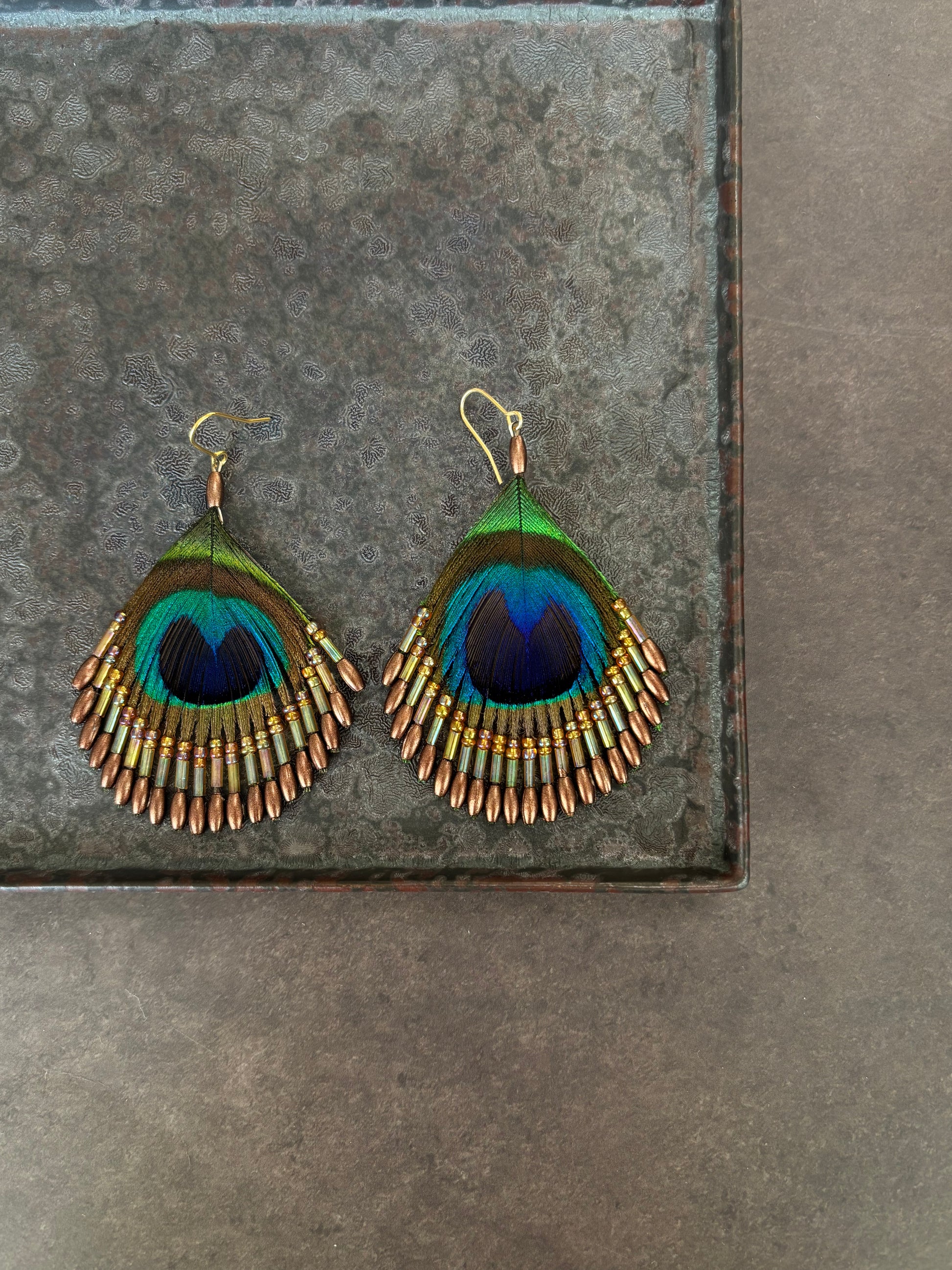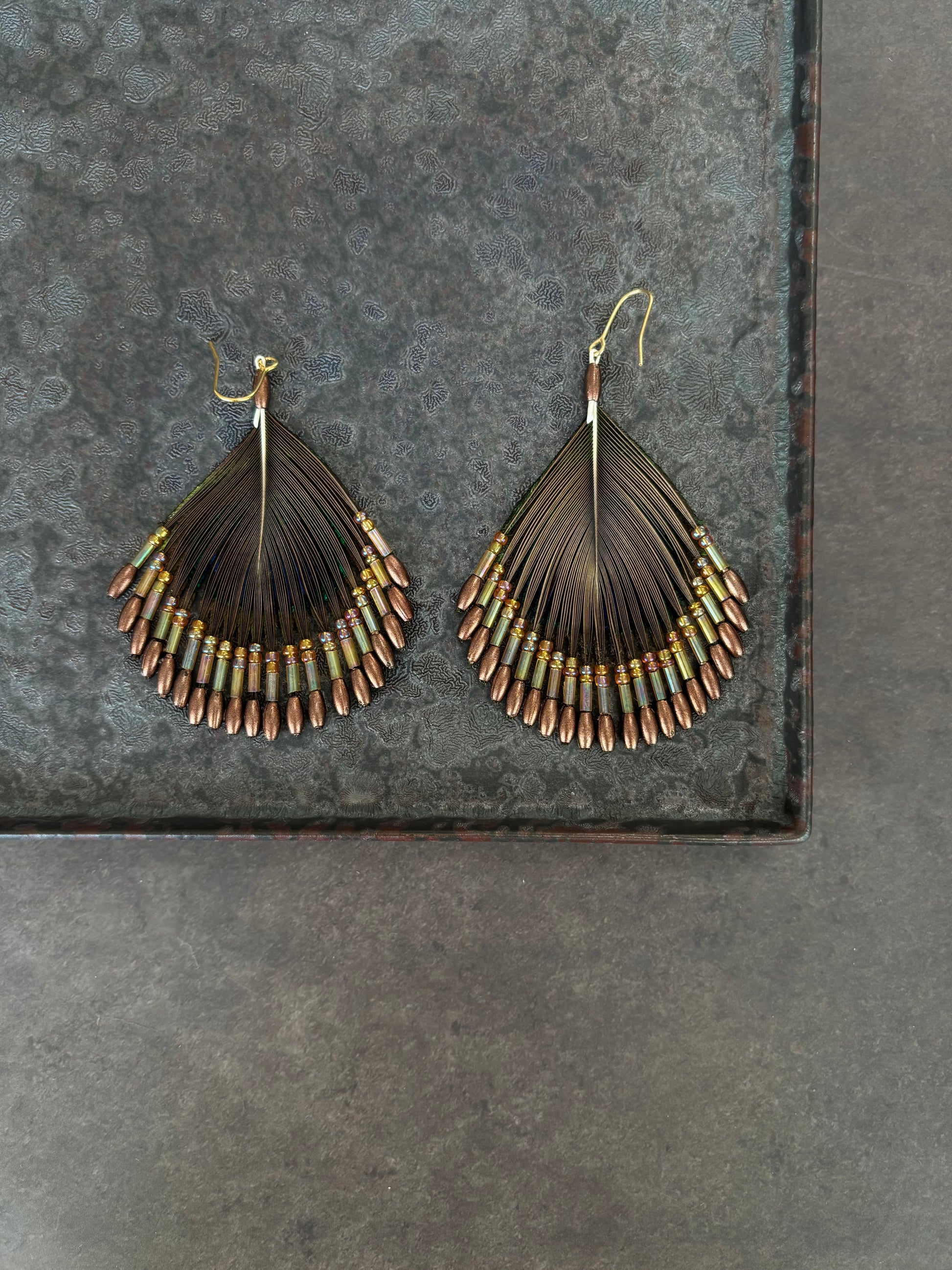 孔雀の羽ピアス ブラウン