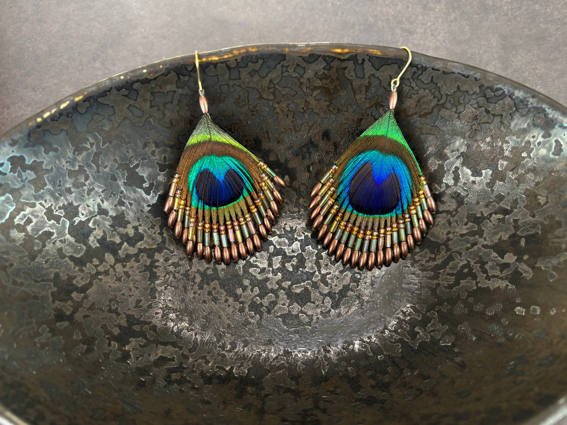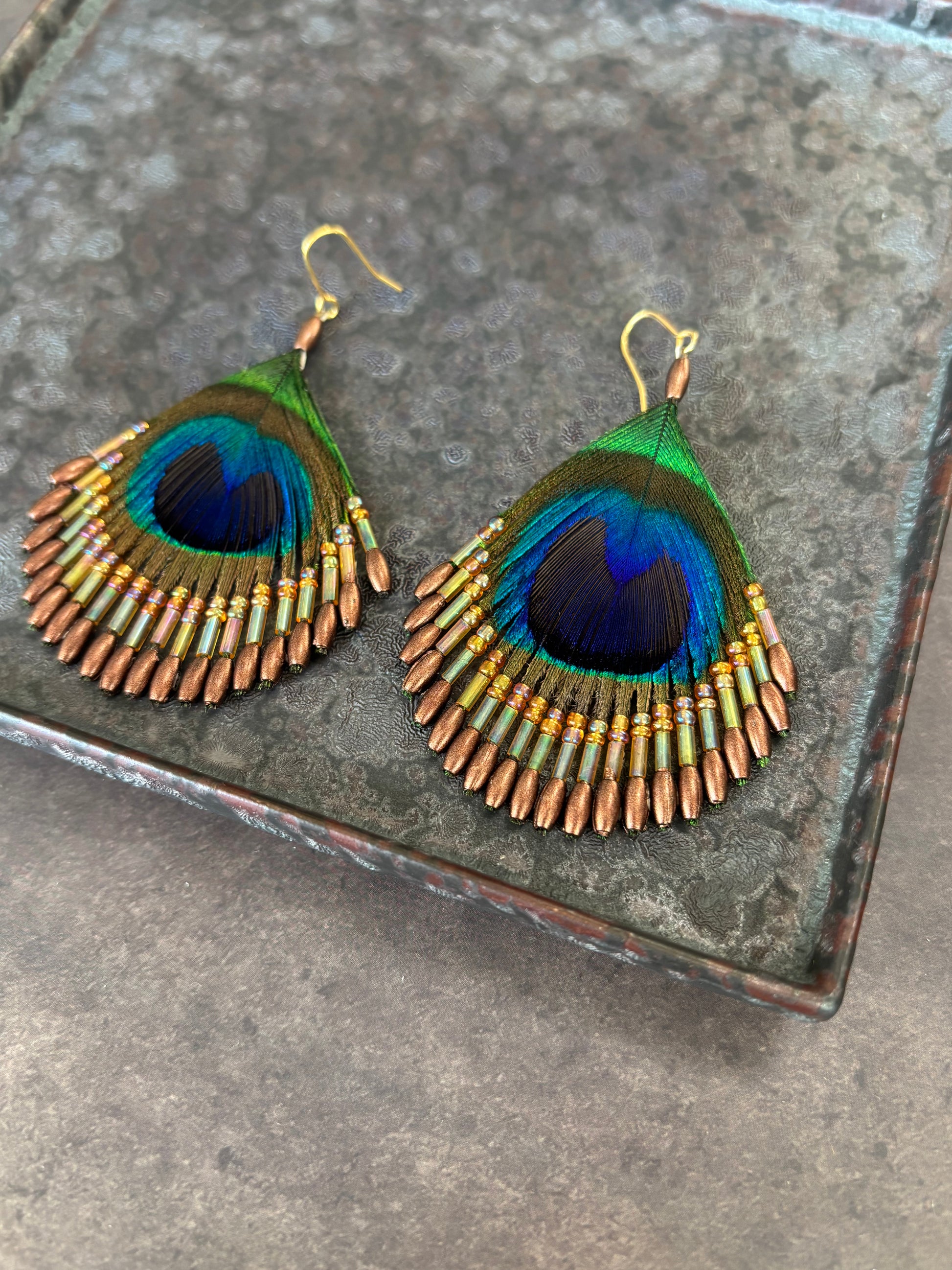 本物の孔雀の羽のピアスです。