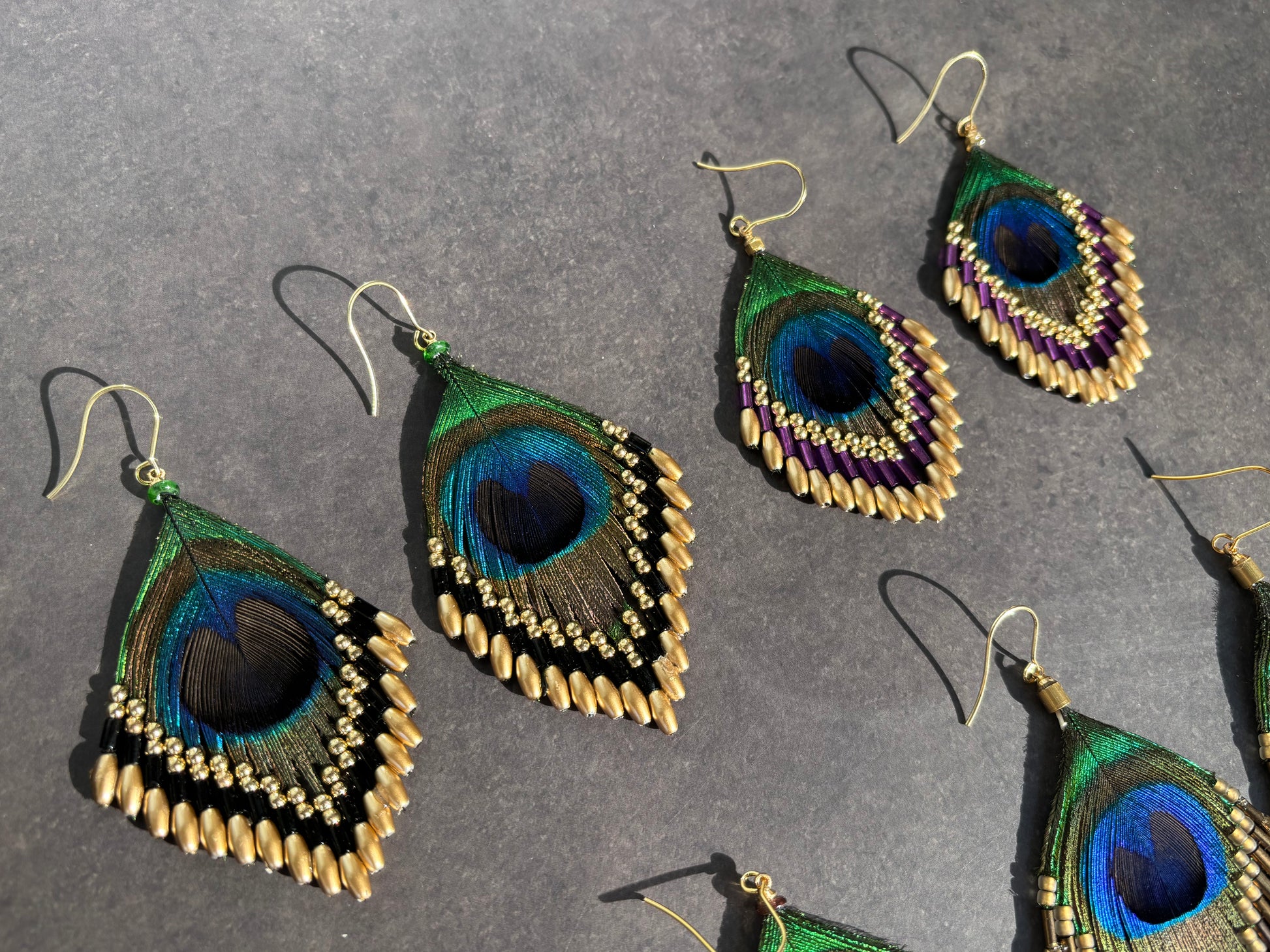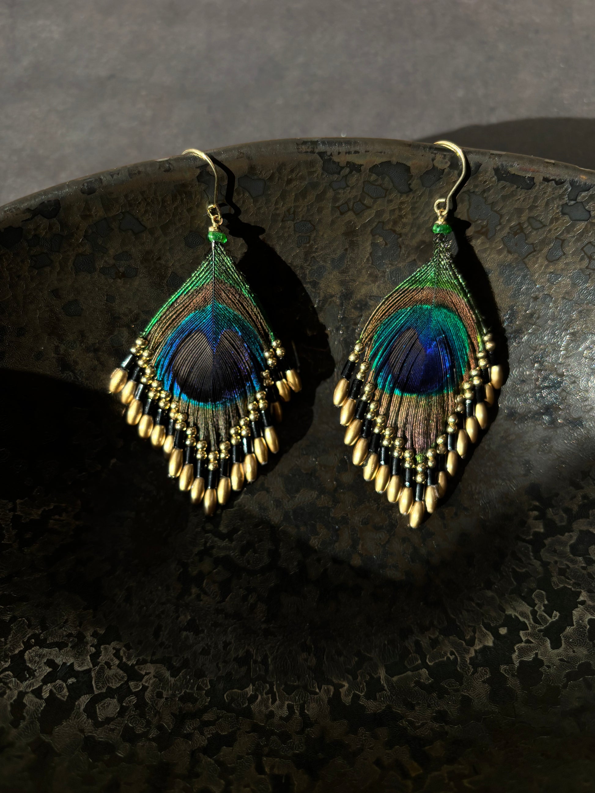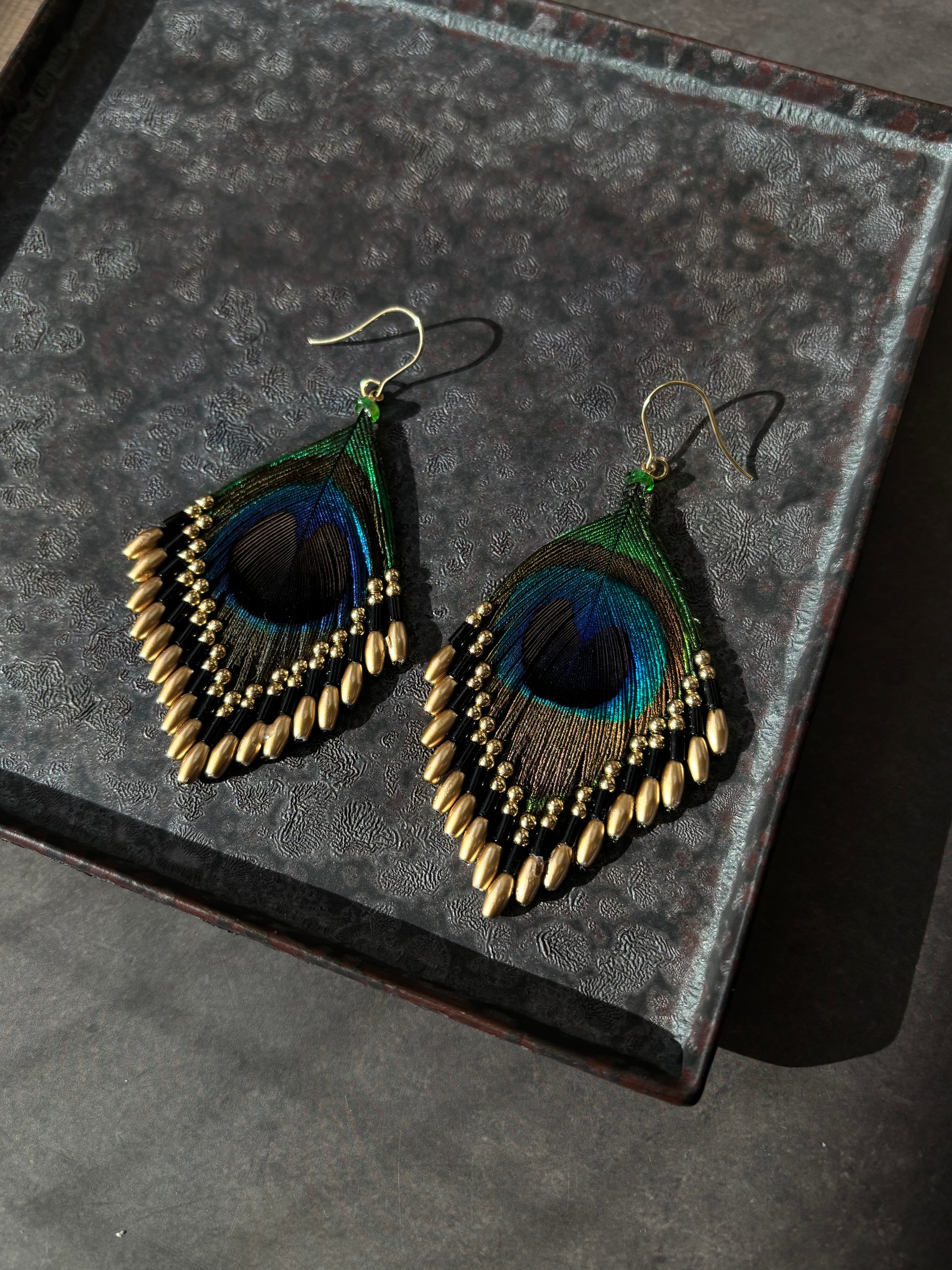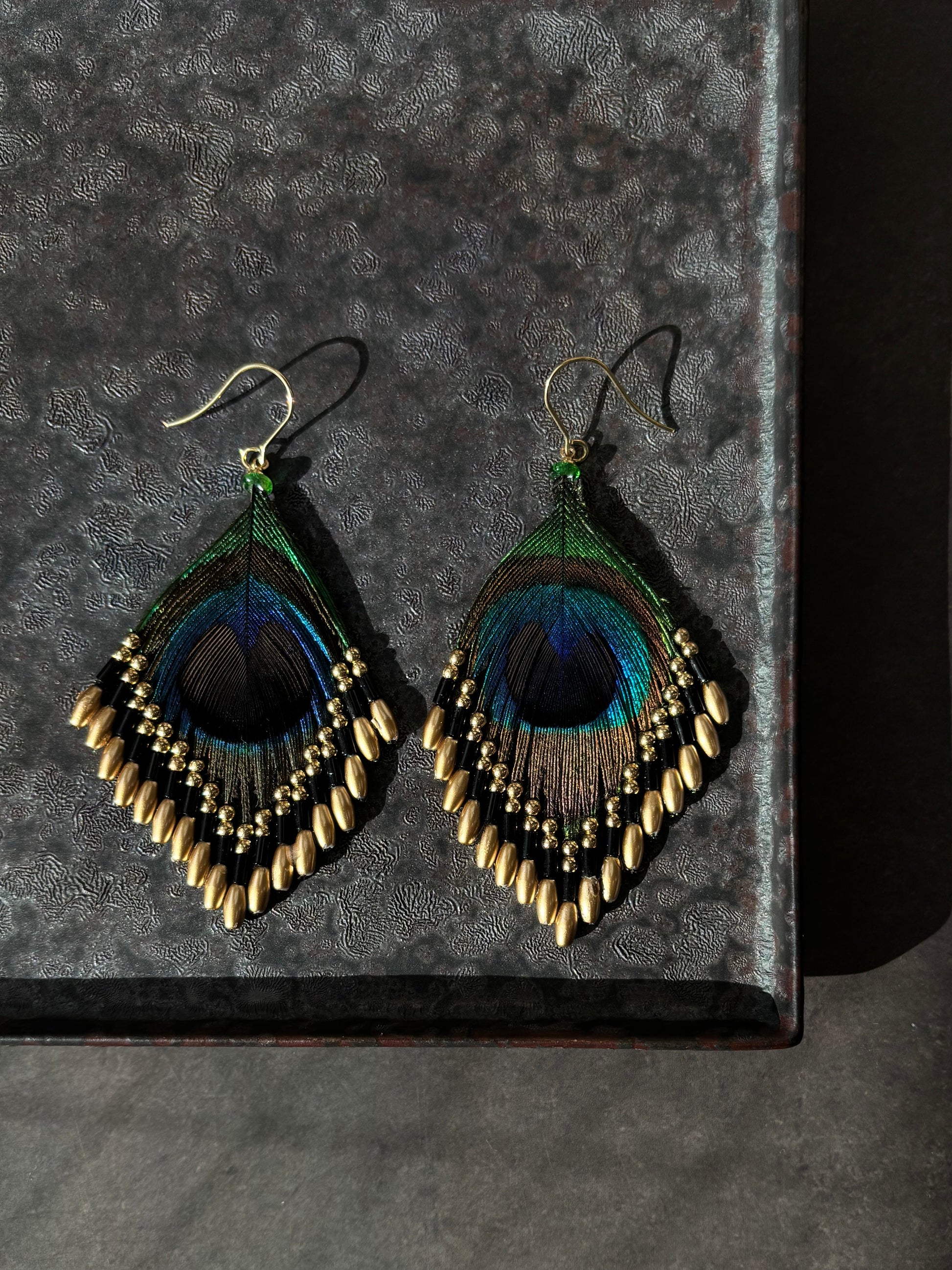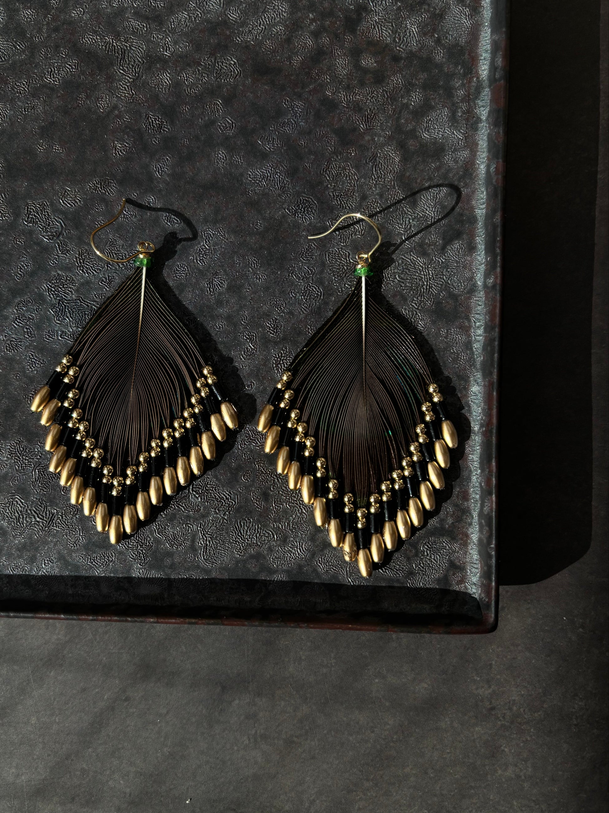孔雀の羽ピアス ブラック