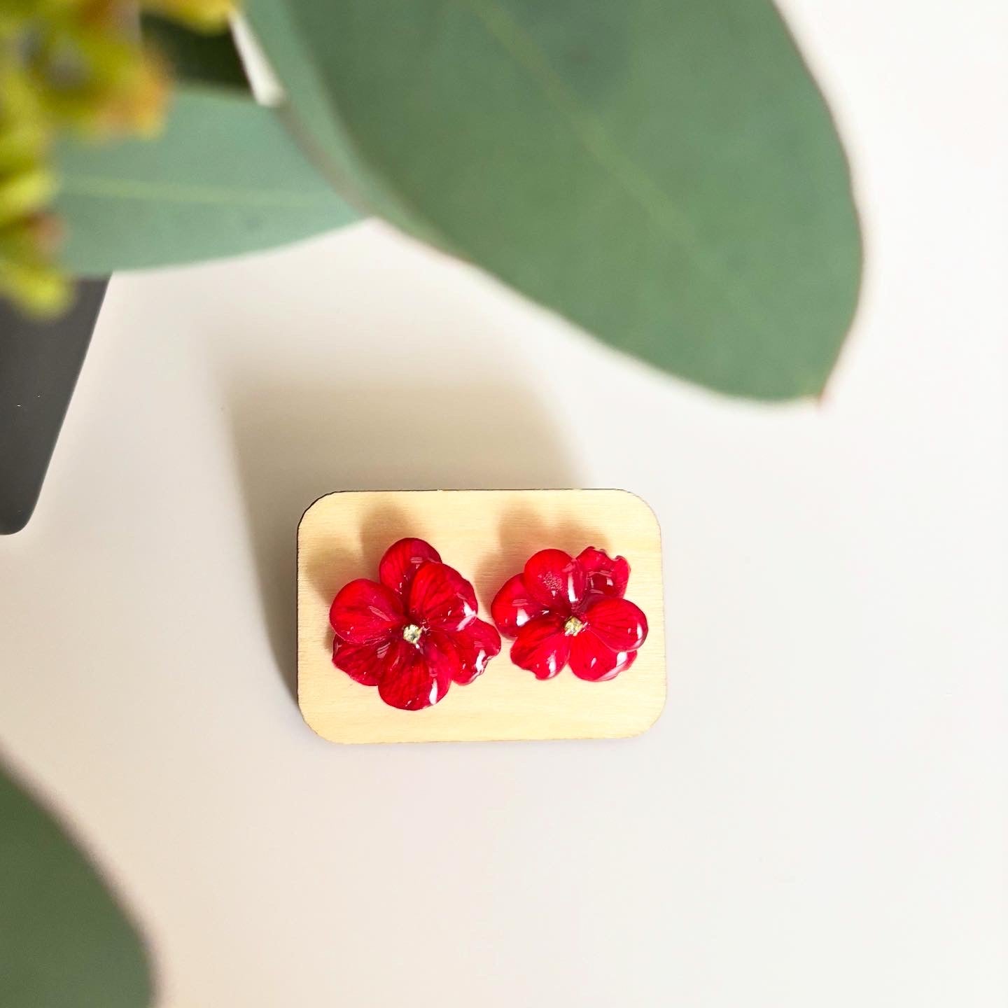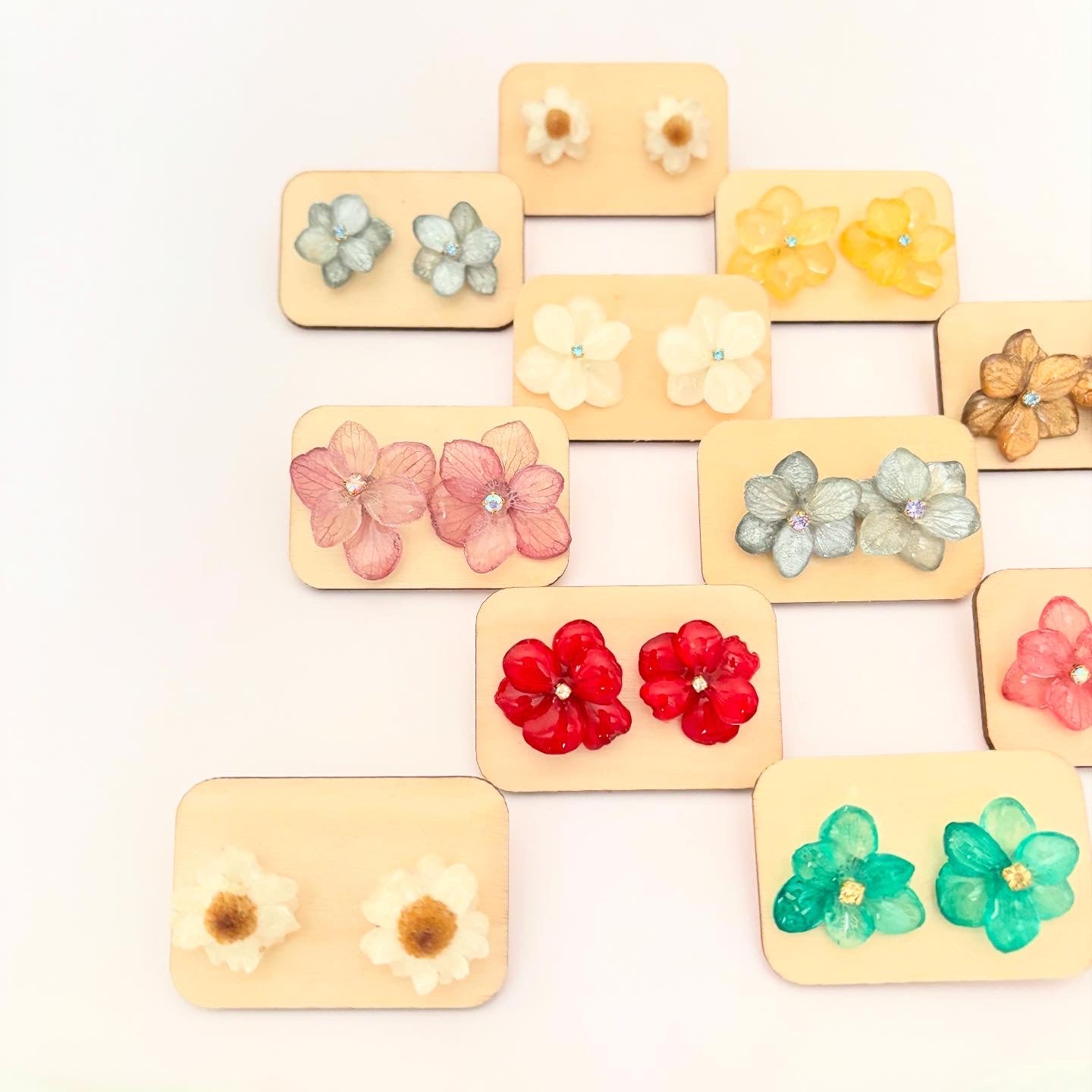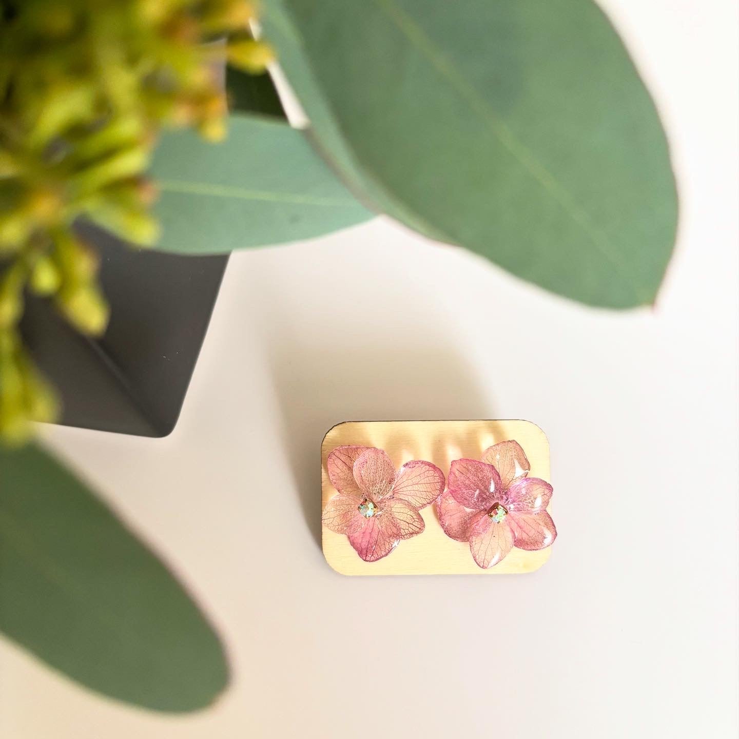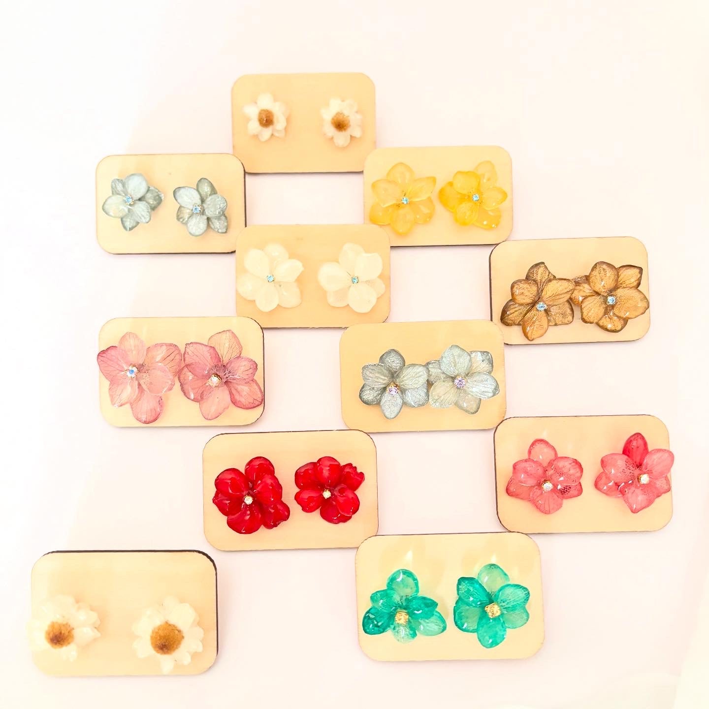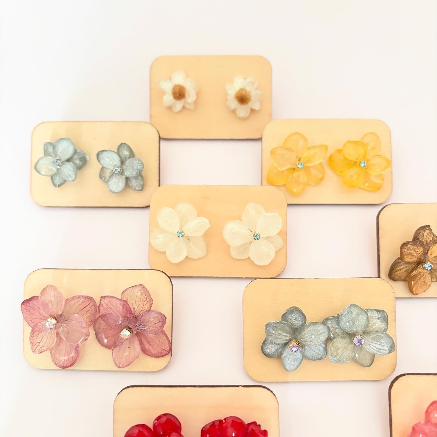 プリザーブドフラワーの工程後、更に油性の着色を施しその後樹脂コーティングを行っています。