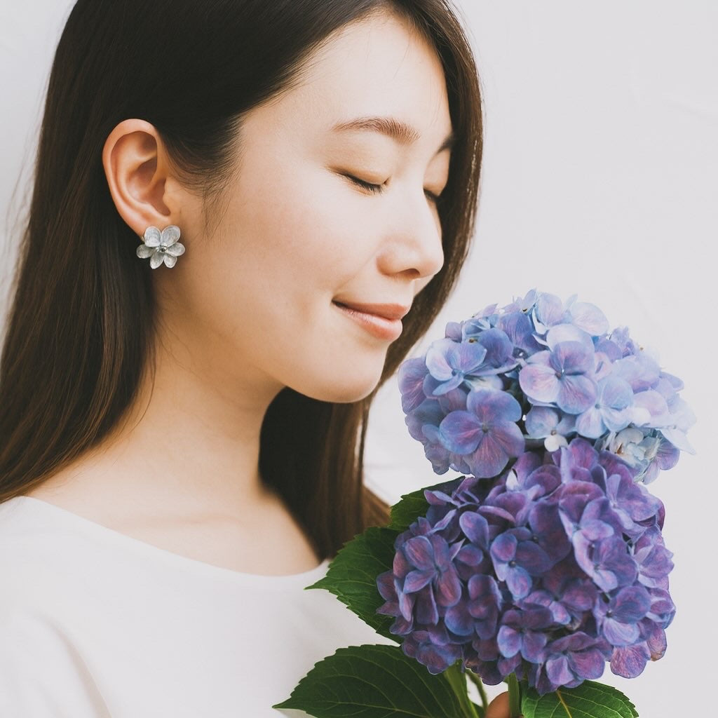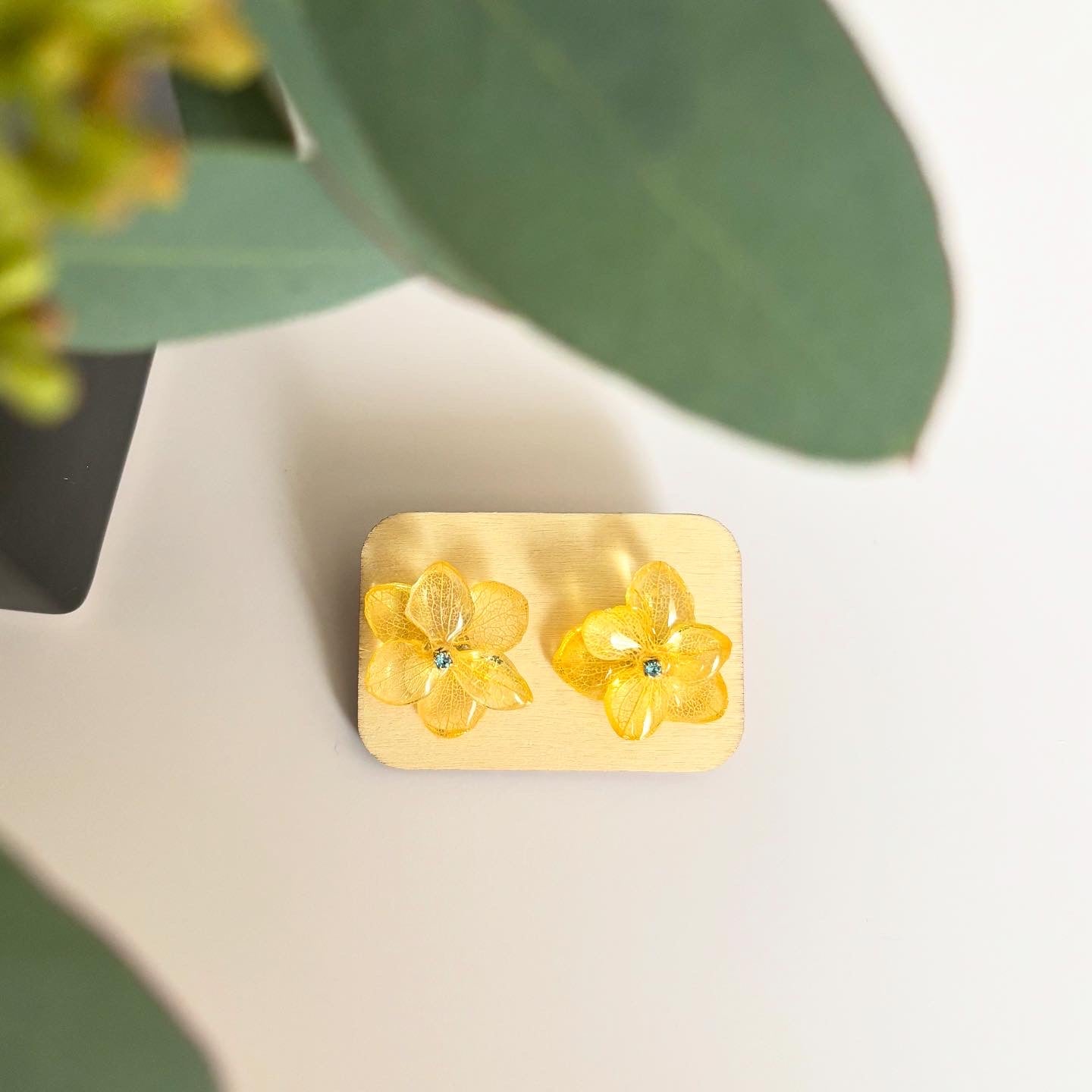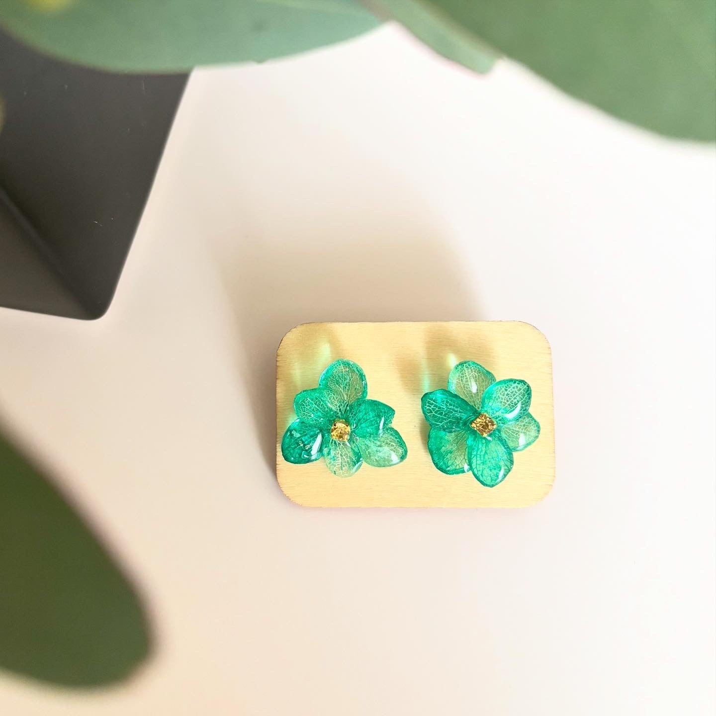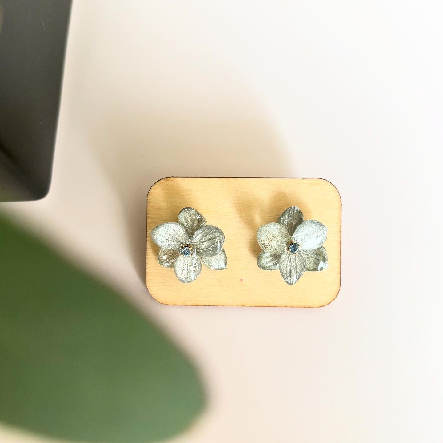 ガラスのような見た目の中に繊細な葉脈が透けて見えて小ぶりですが存在感のあるピアスです。