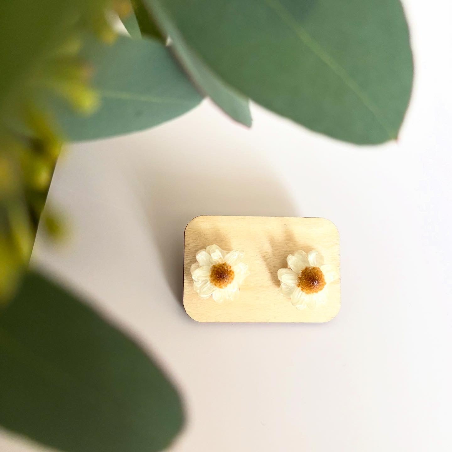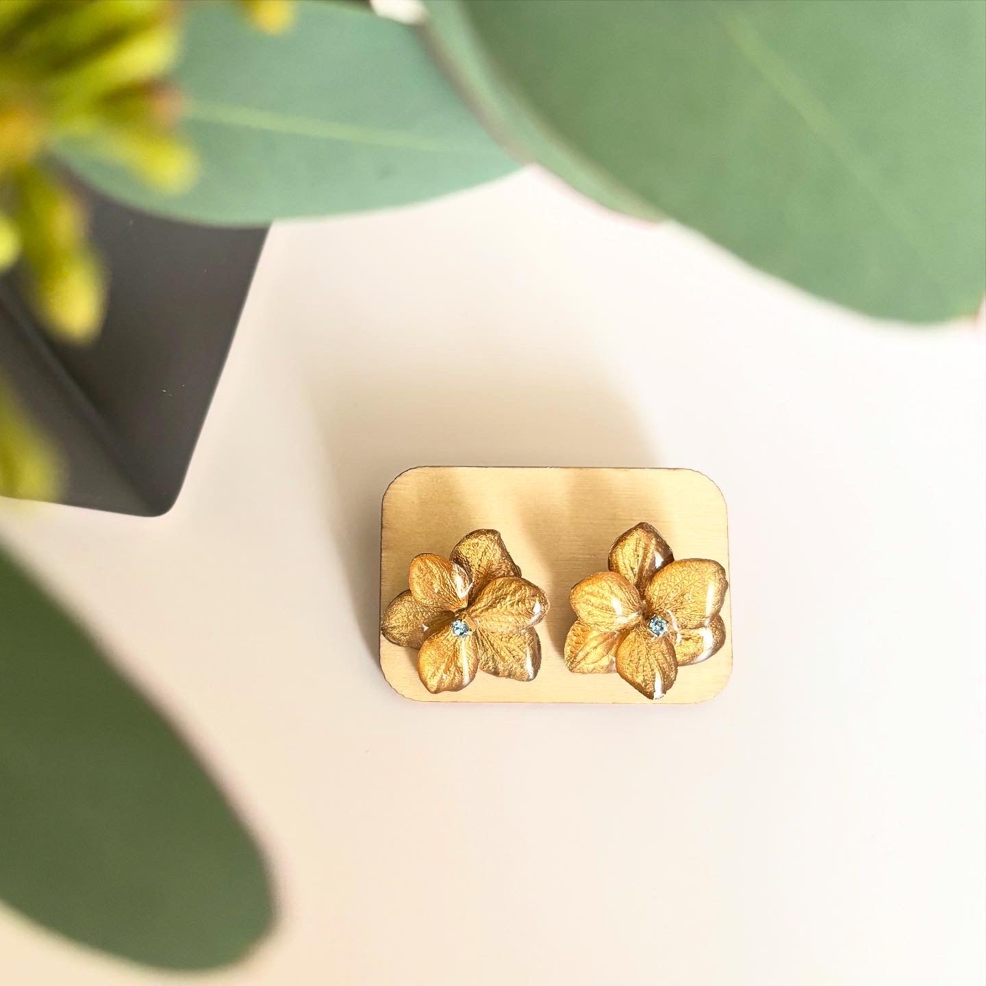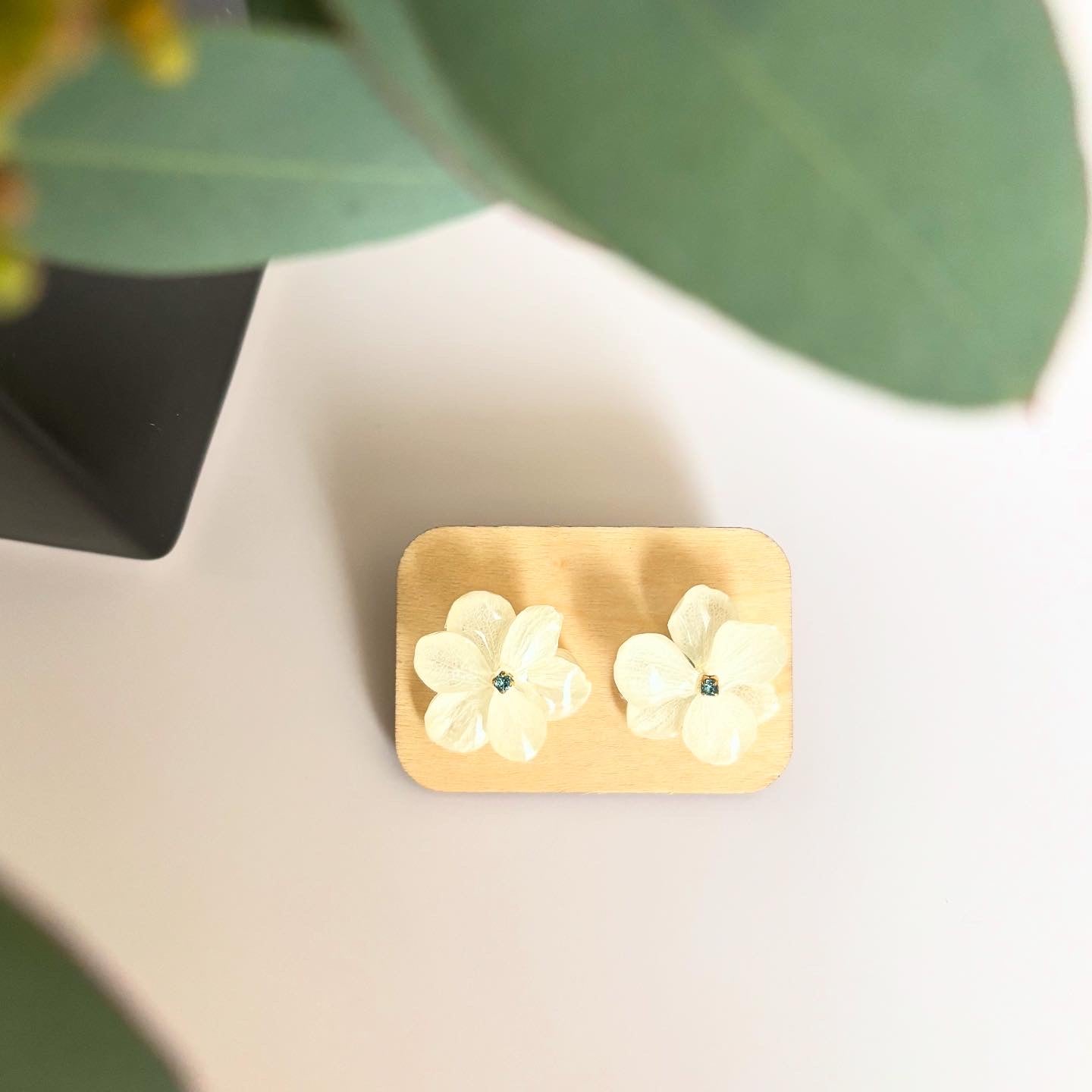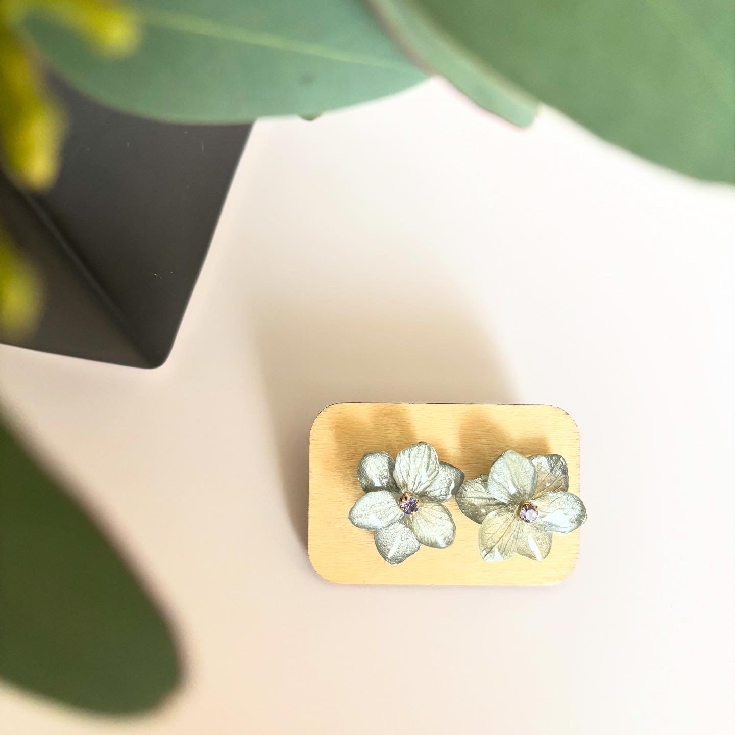 ガラスのような見た目の中に繊細な葉脈が透けて見えて小ぶりですが存在感のあるピアスです。