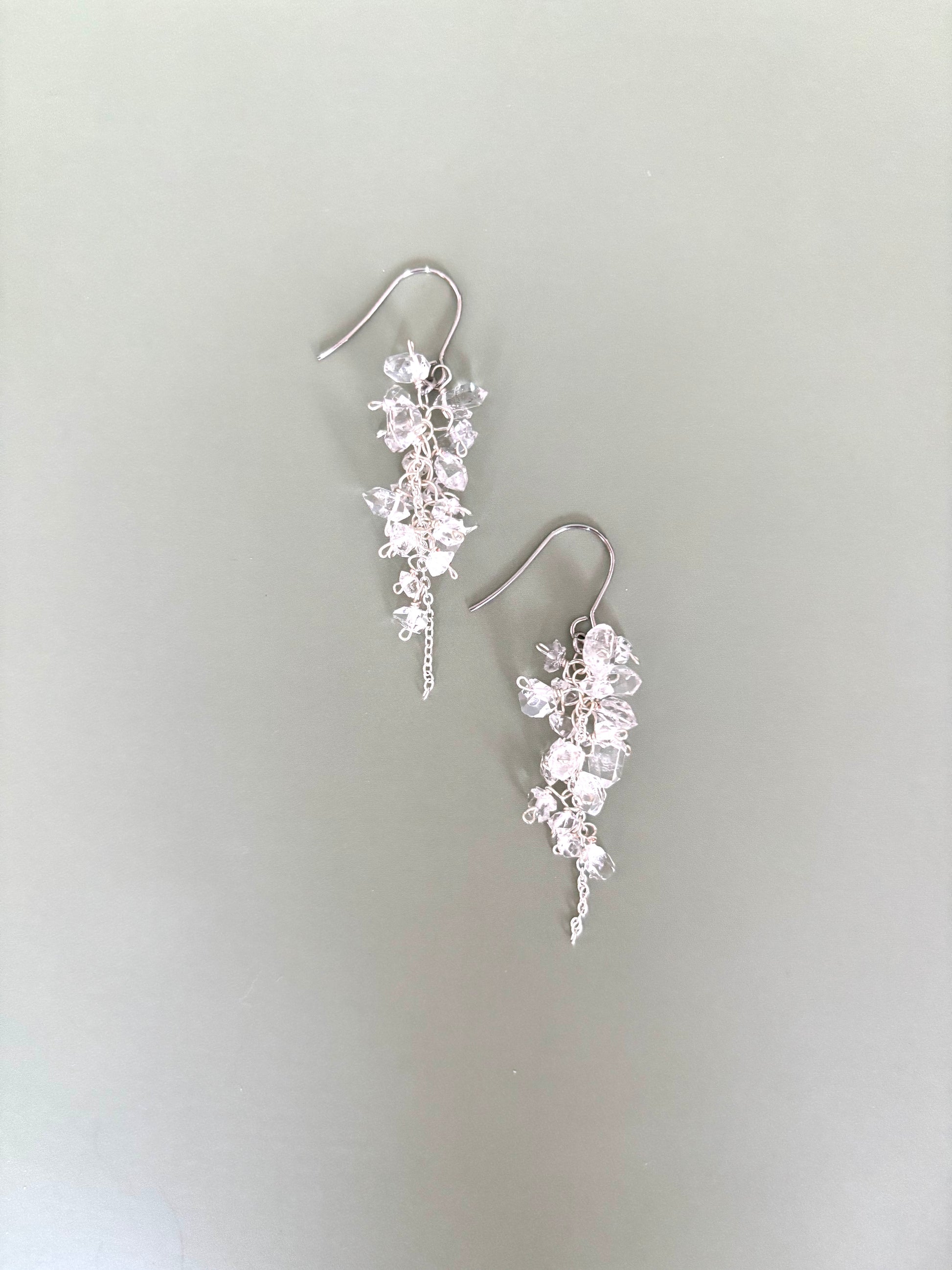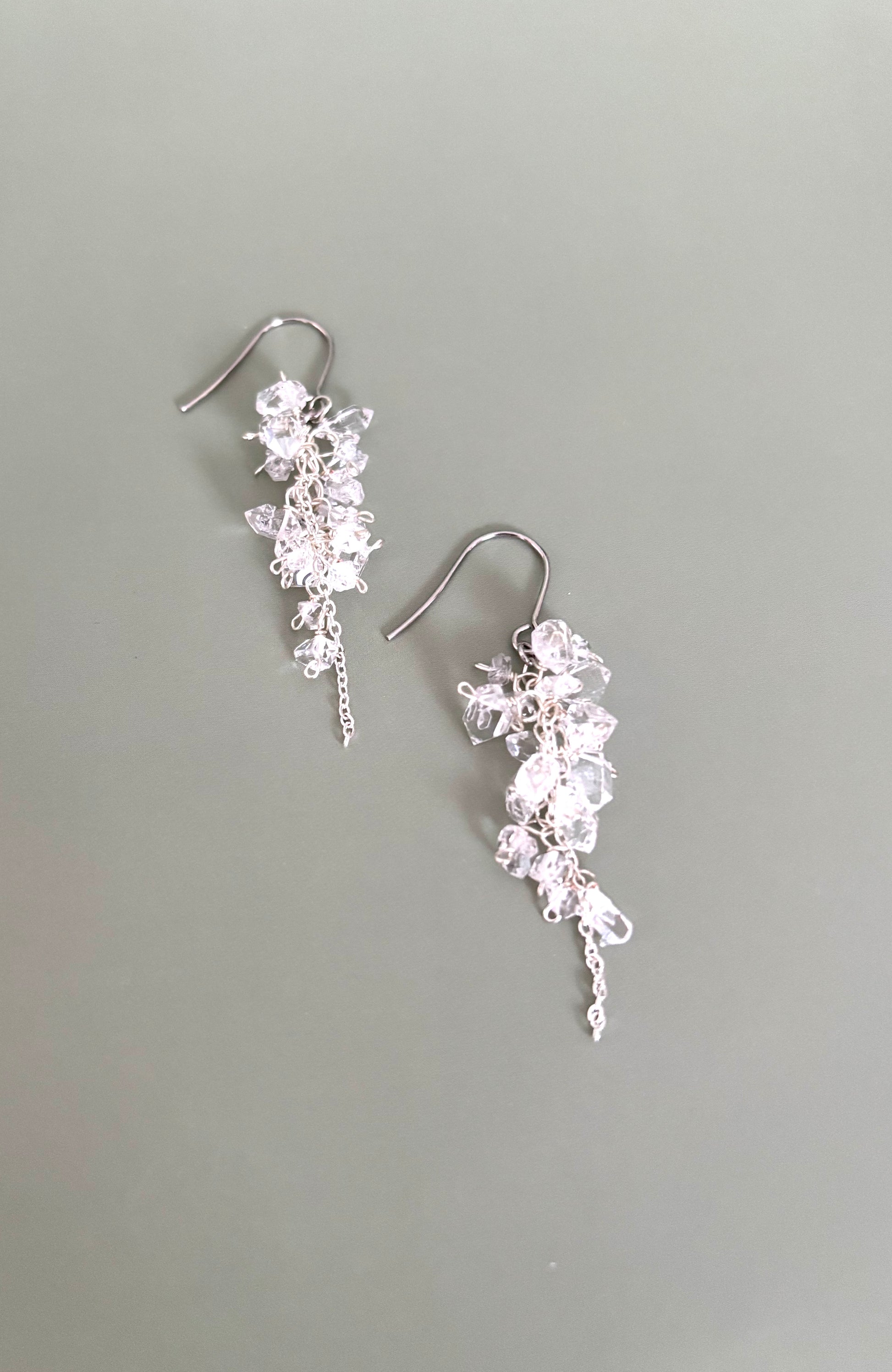 ハーキマーダイヤモンドとは、アメリカ合衆国ニューヨーク州のハーキマー地方で産出される、ダイヤモンドのような輝きを持つ特殊な水晶(クォーツ)です。通常の水晶とは異なり、自然に両端が尖った「ダブルターミネート」の形状で、透明度が高く、カットされていないにも関わらずダイヤモンドのような輝きを持ちます。