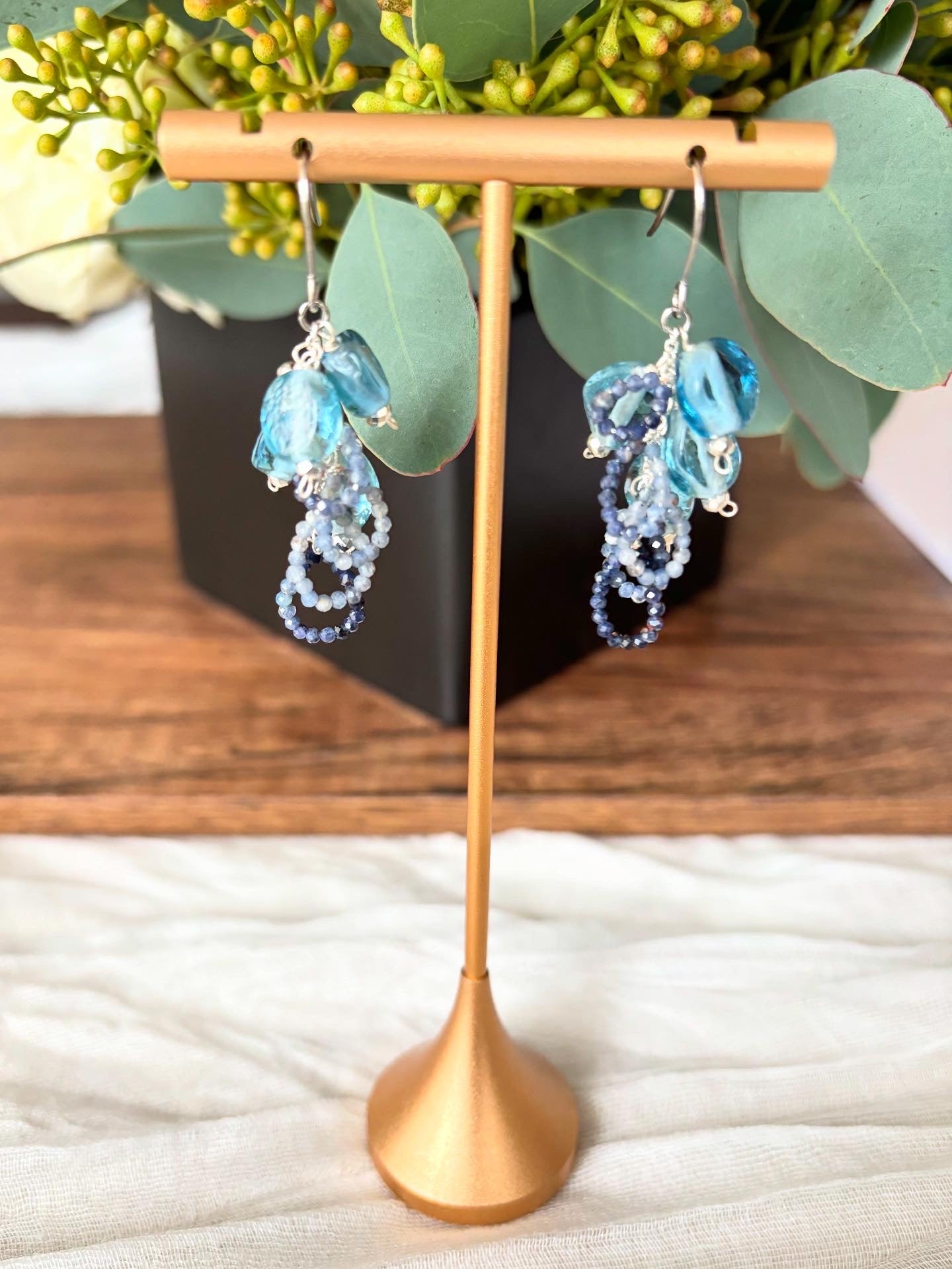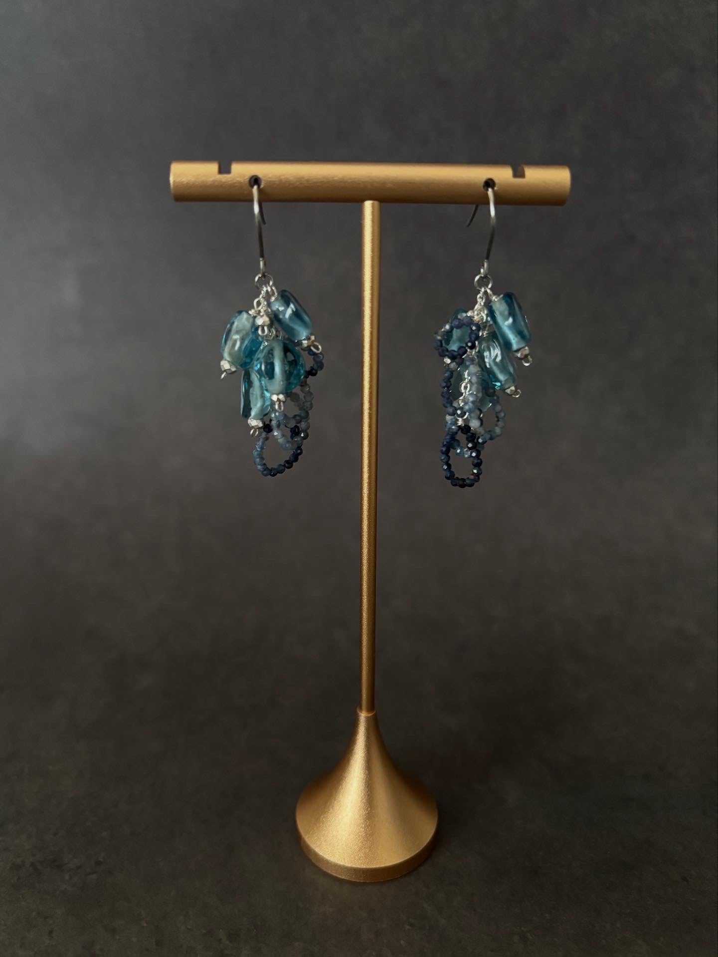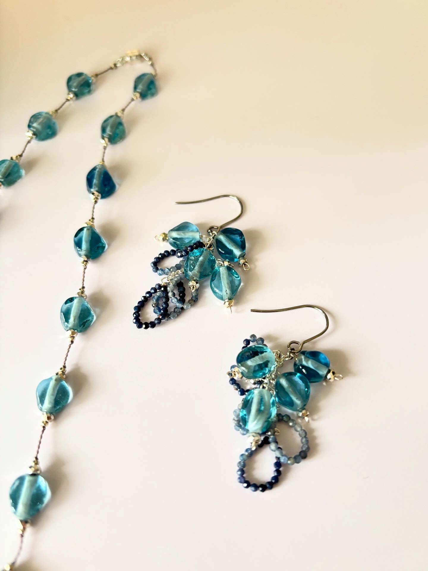ジャワ島トンボ玉とサファイヤのピアス