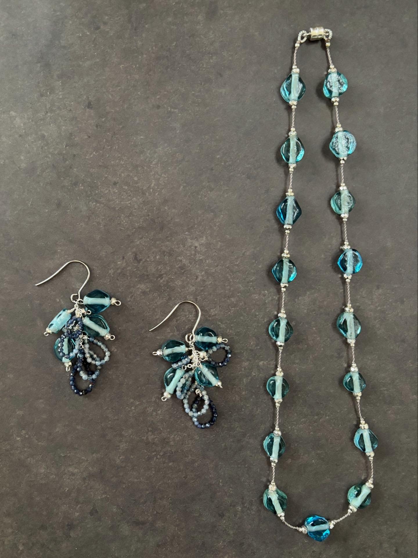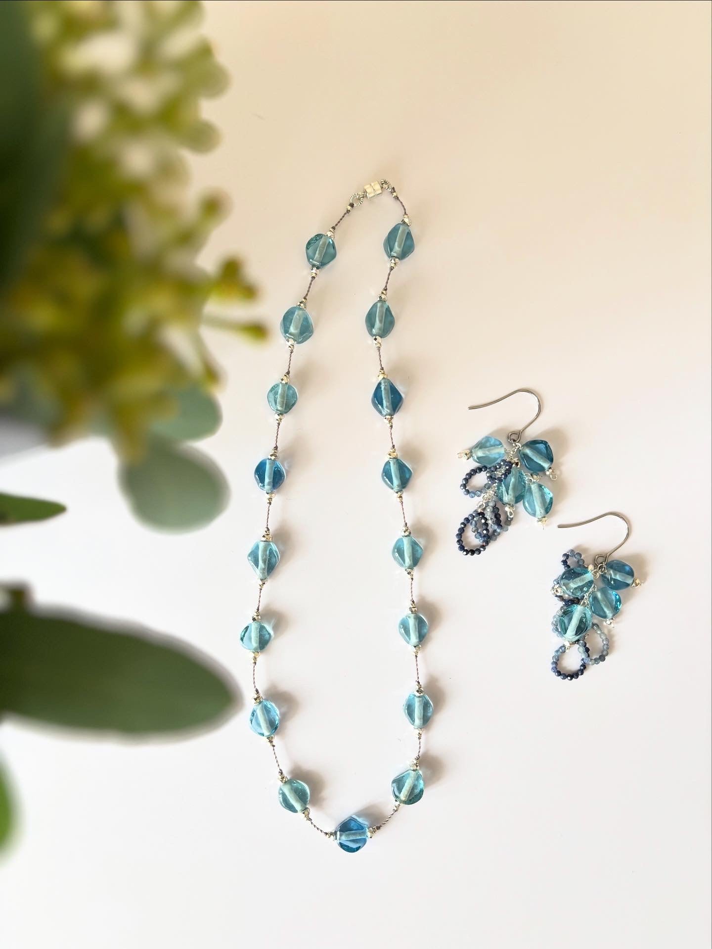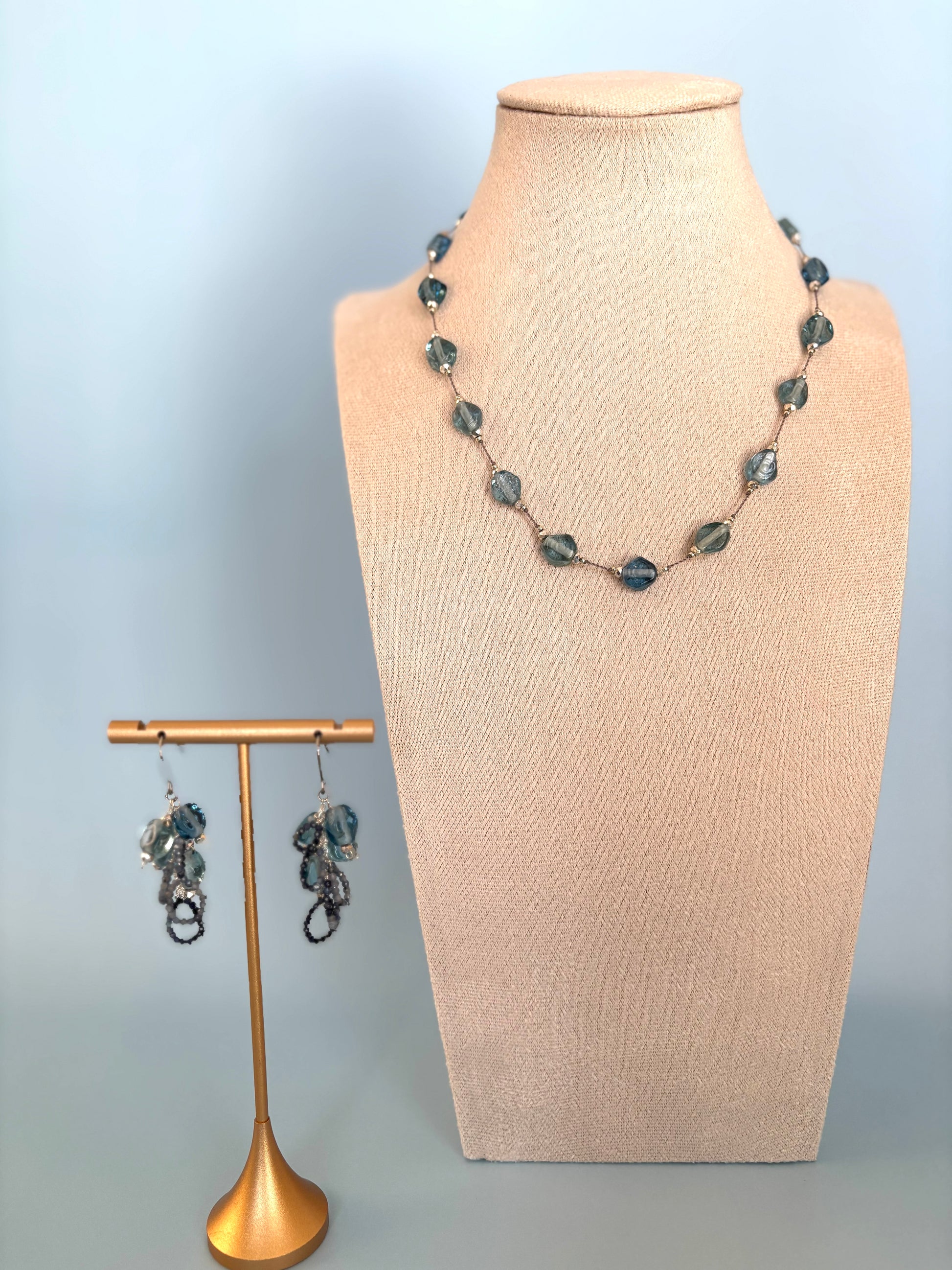 ジャワ島トンボ玉とサファイヤのピアス