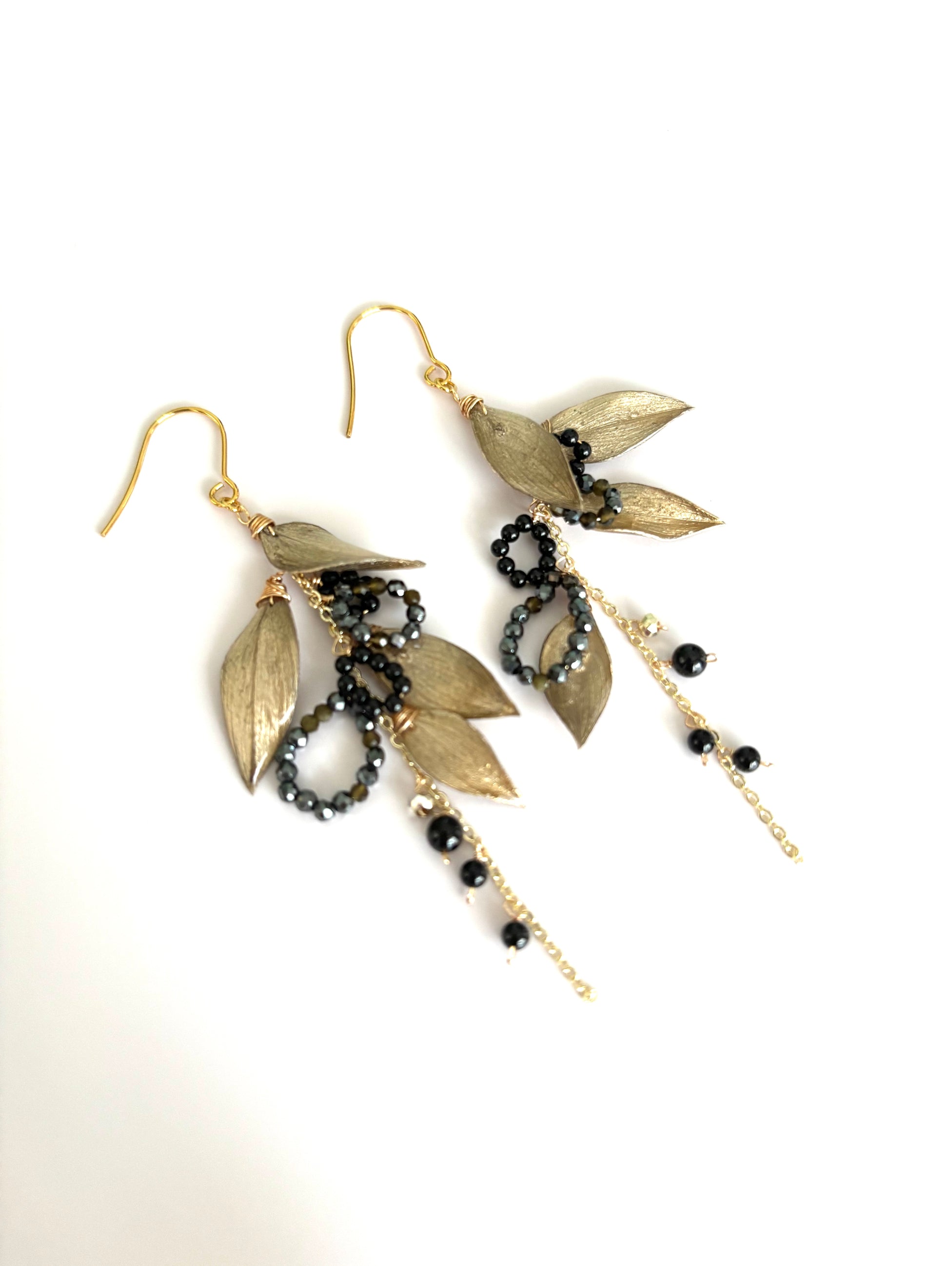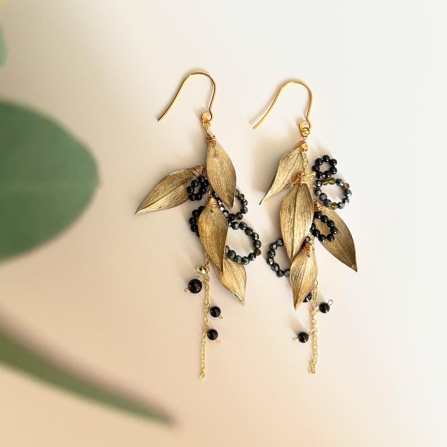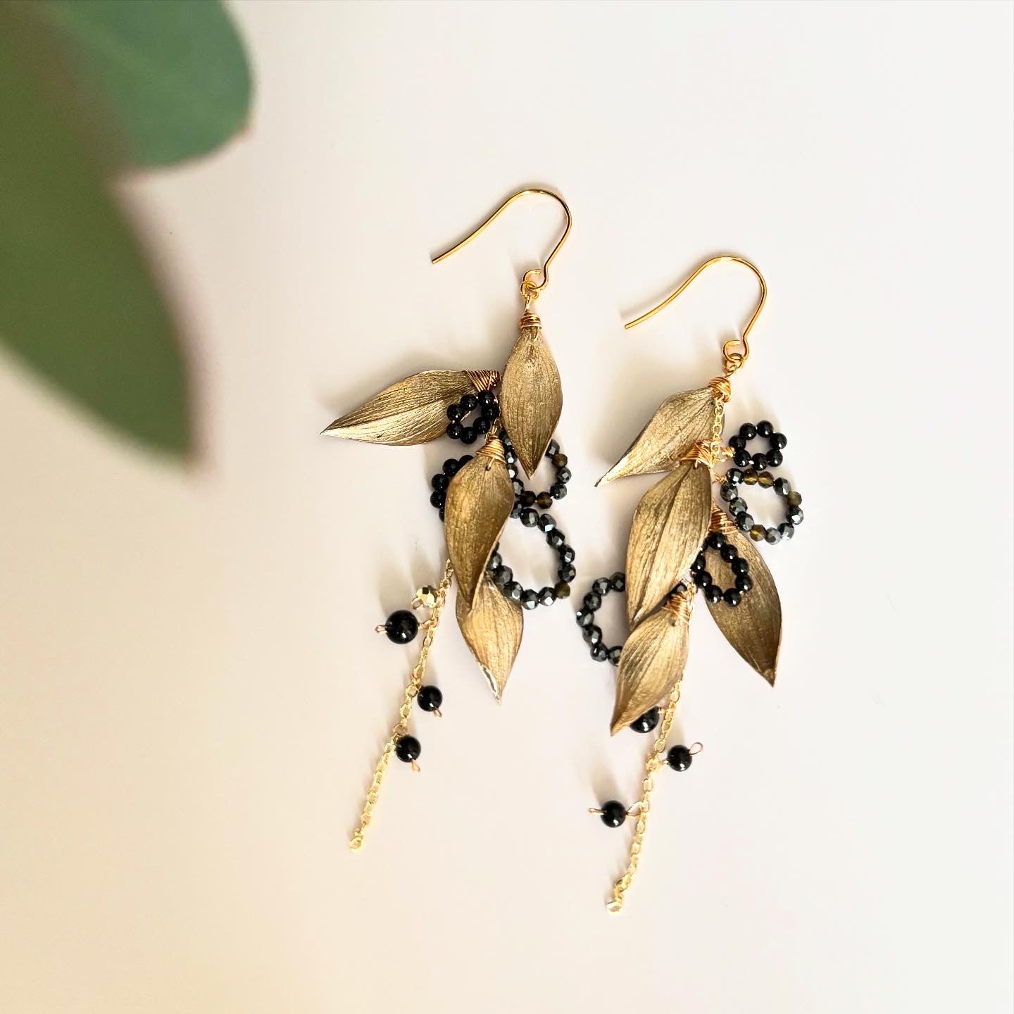 ラスカス(植物)とブラックスピネルのピアスです。