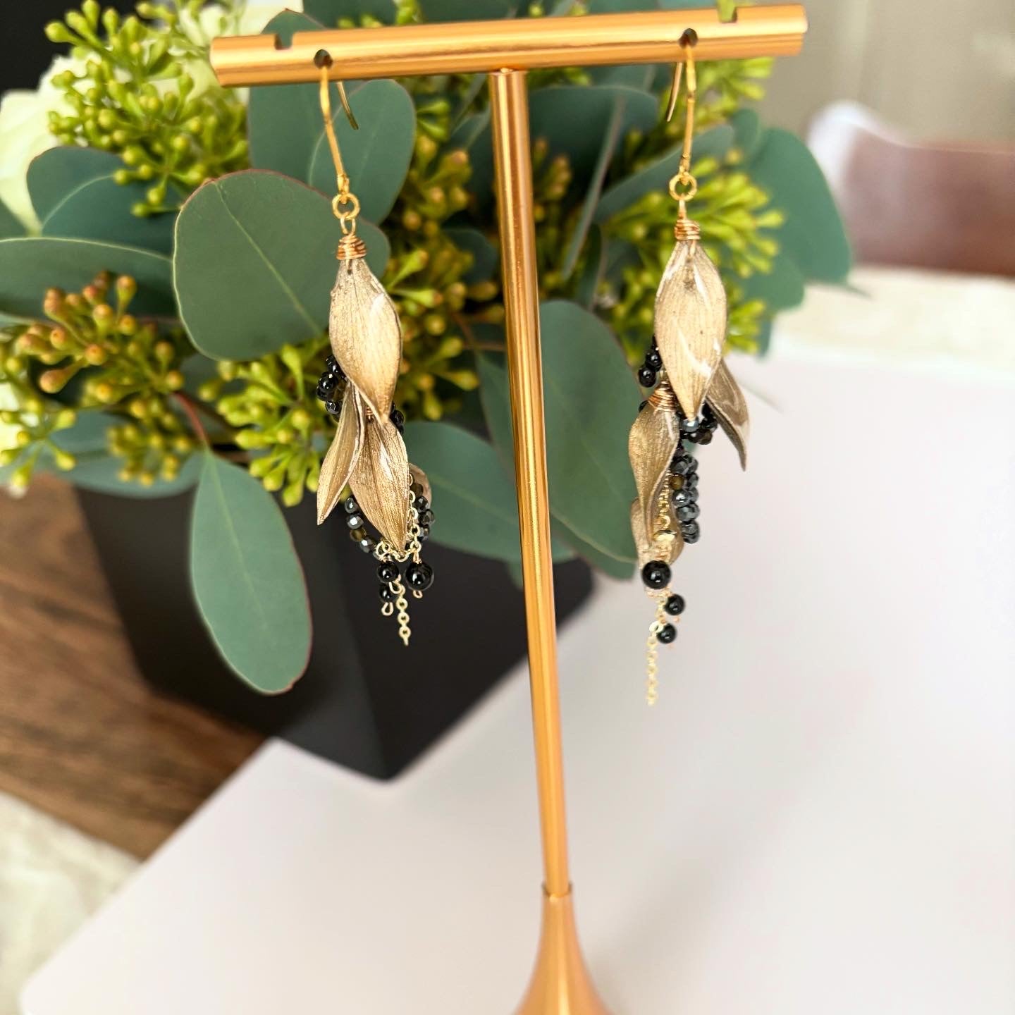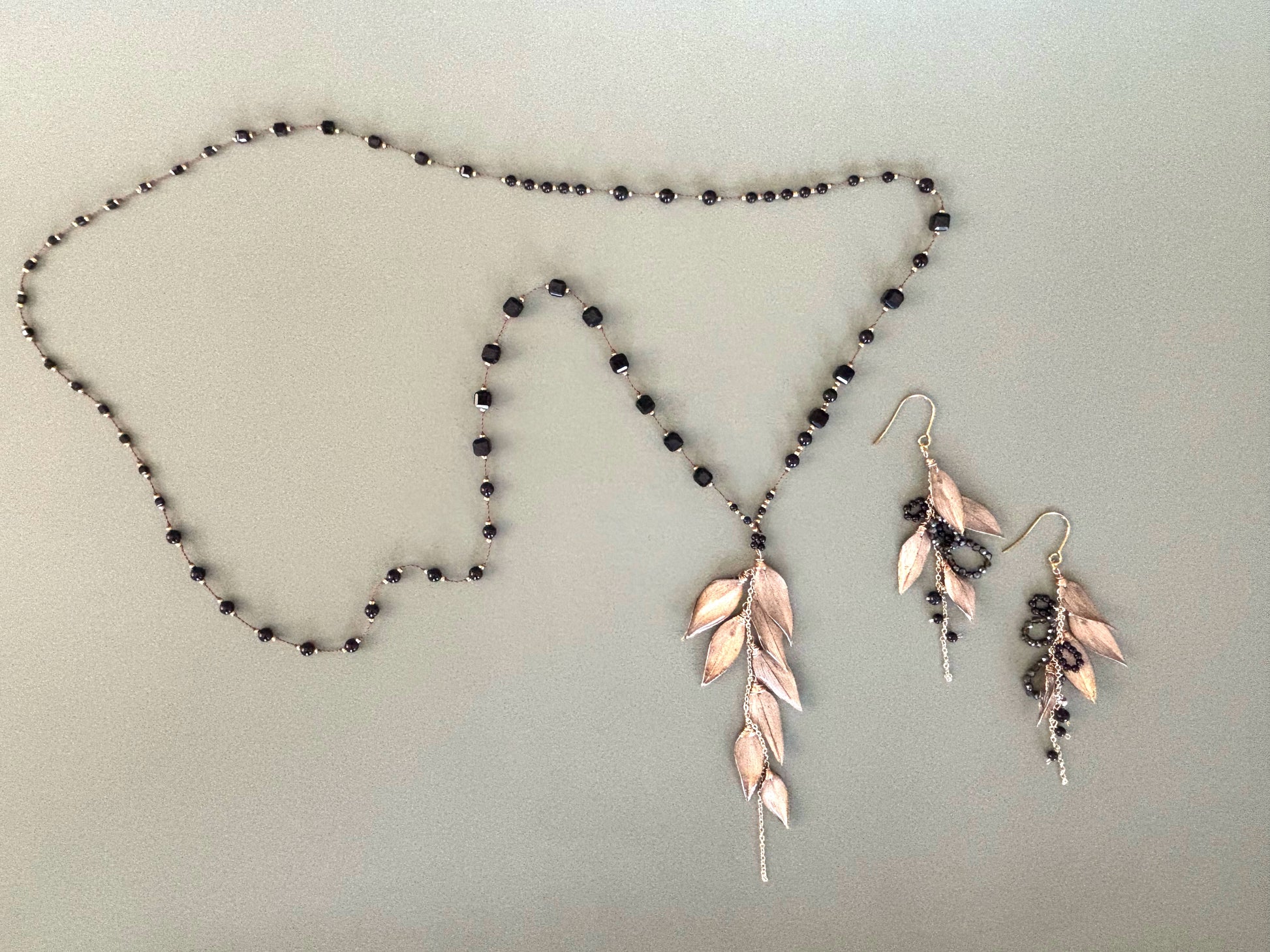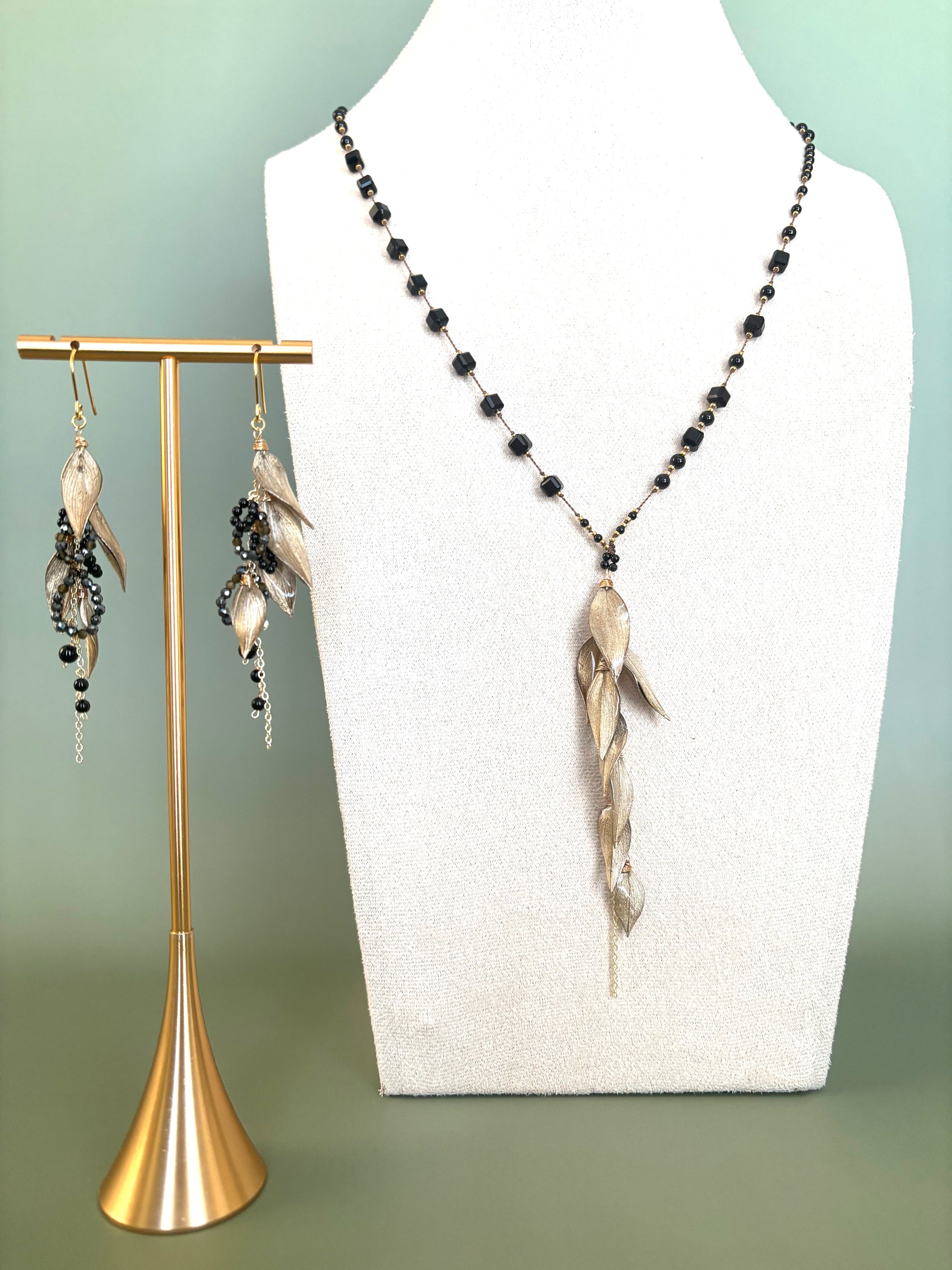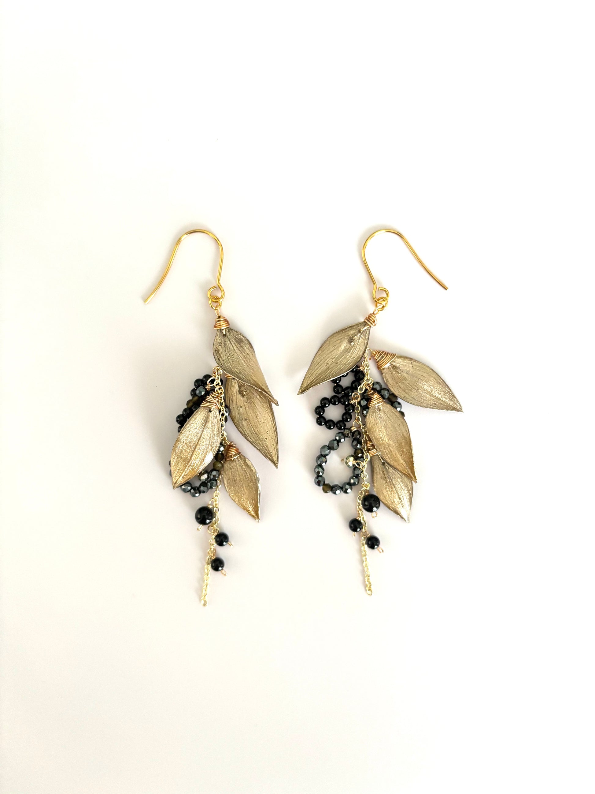 ラスカス(植物)とブラックスピネルのピアスです。